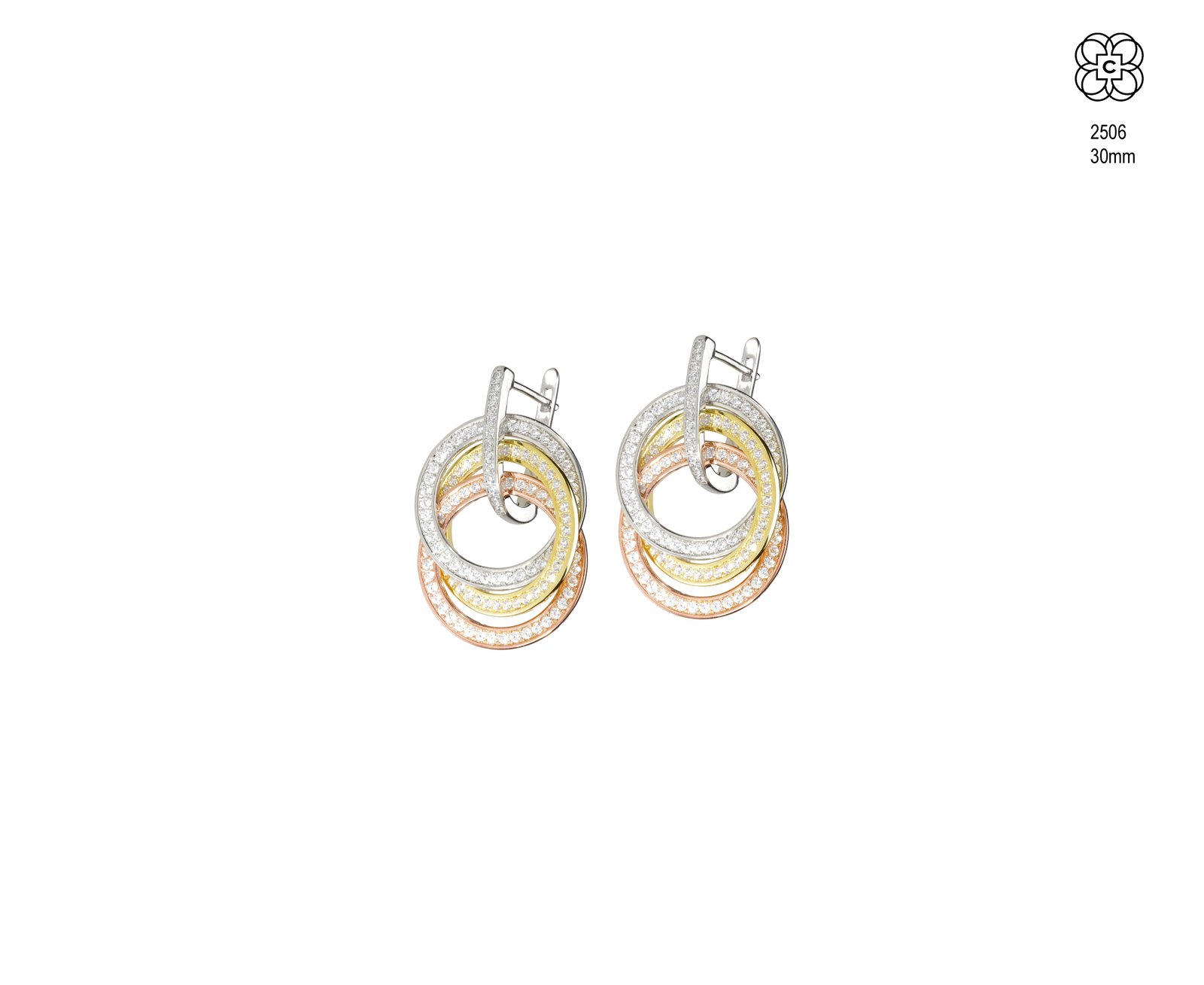 *Caravana *Material: Plata 925 *Color del Metal: Blanco y amarillo *Piedra: Circonita *Tamaño: 30 mm