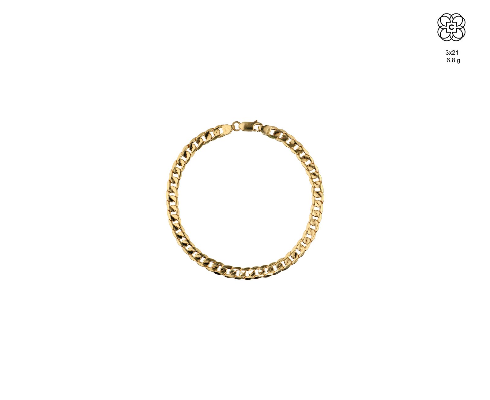 *Pulsera *Material: Oro 18K *Color del Metal: Amarillo *Tamaño: 21 cm *Peso aprox.: 6.8 g