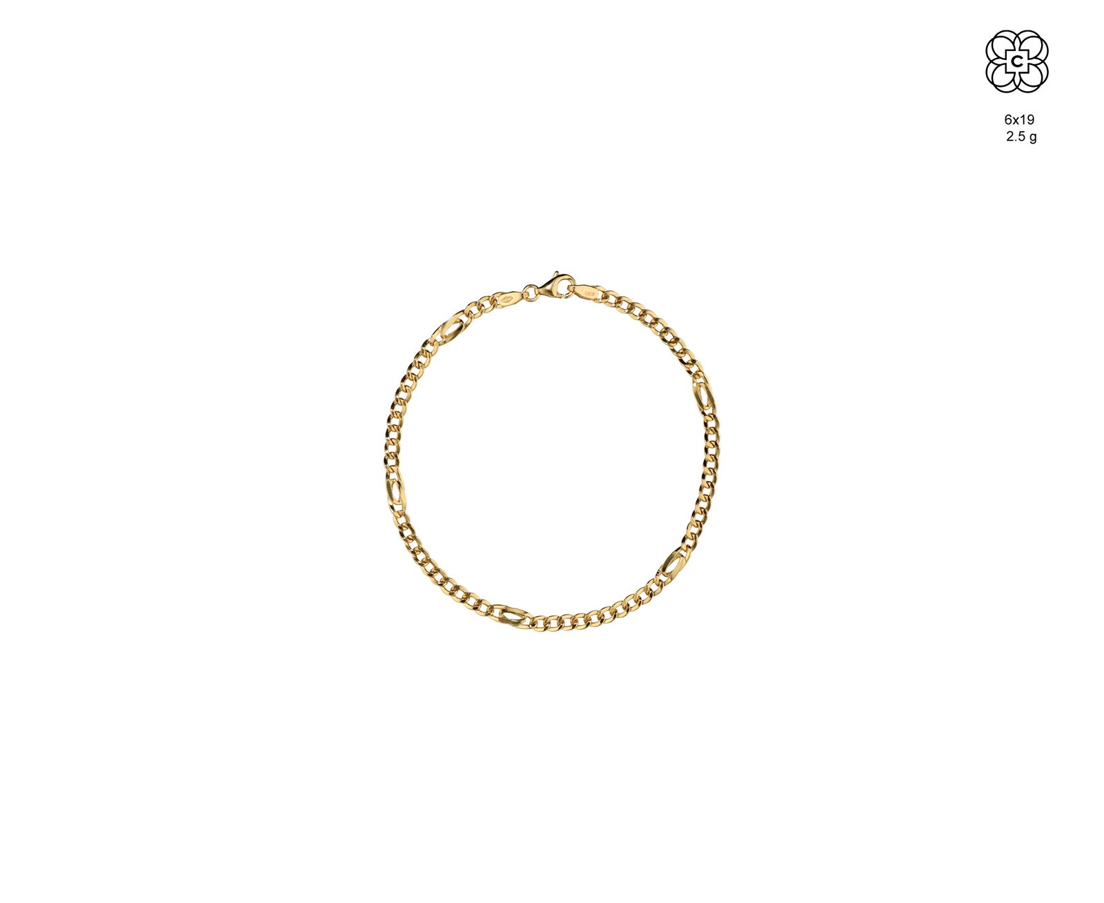 *Pulsera *Material: Oro 18K *Color del Metal: Amarillo *Tamaño: 19 cm *Peso aprox.: 2.5