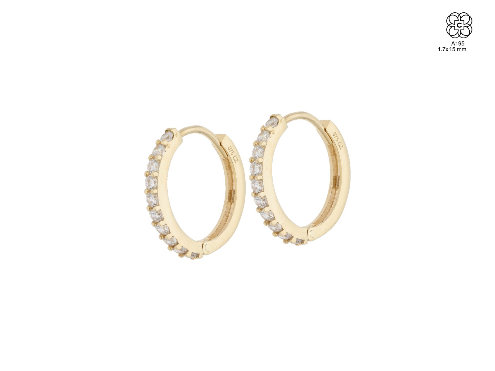 *Caravana *Material: Oro 9K *Color del Metal: Amarillo *Piedra: Circonita *Tamaño: 15 mm