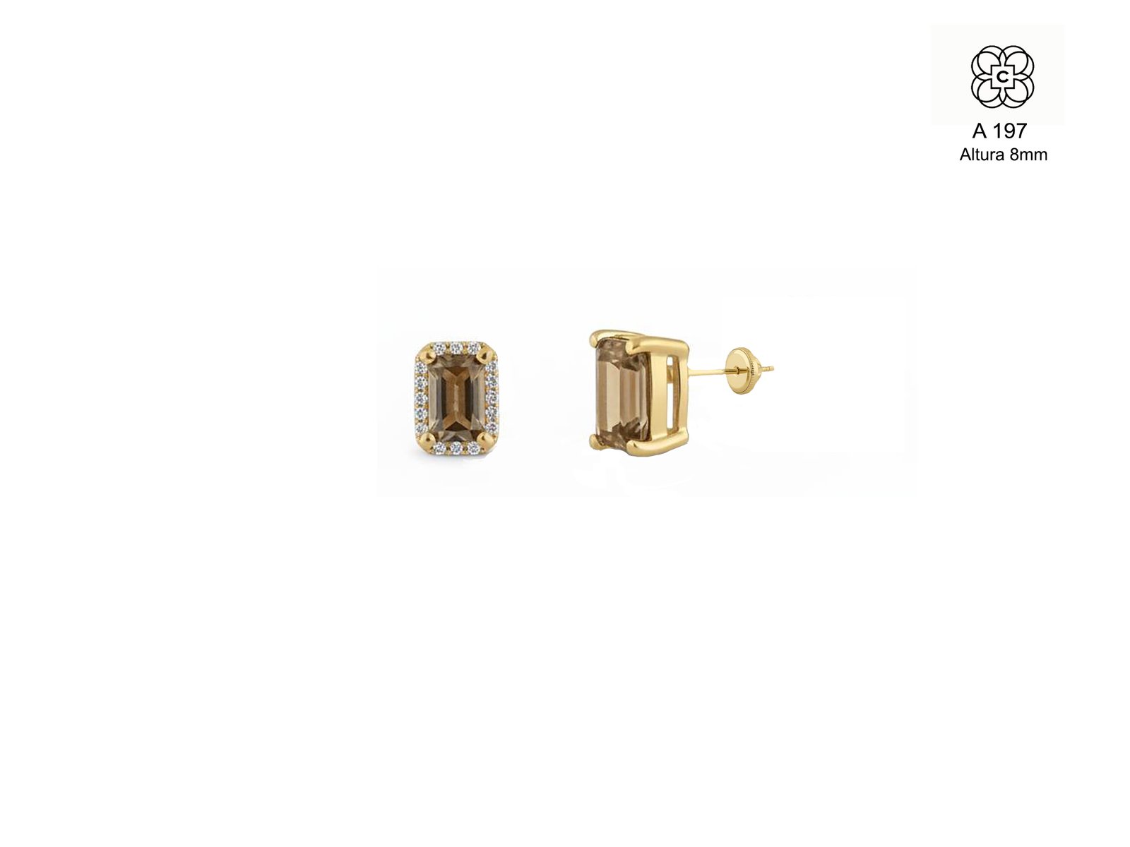 *Caravanas *Material: Oro 9K *Color del Metal: Amarillo *Piedra: Circonita color Gris ahumado