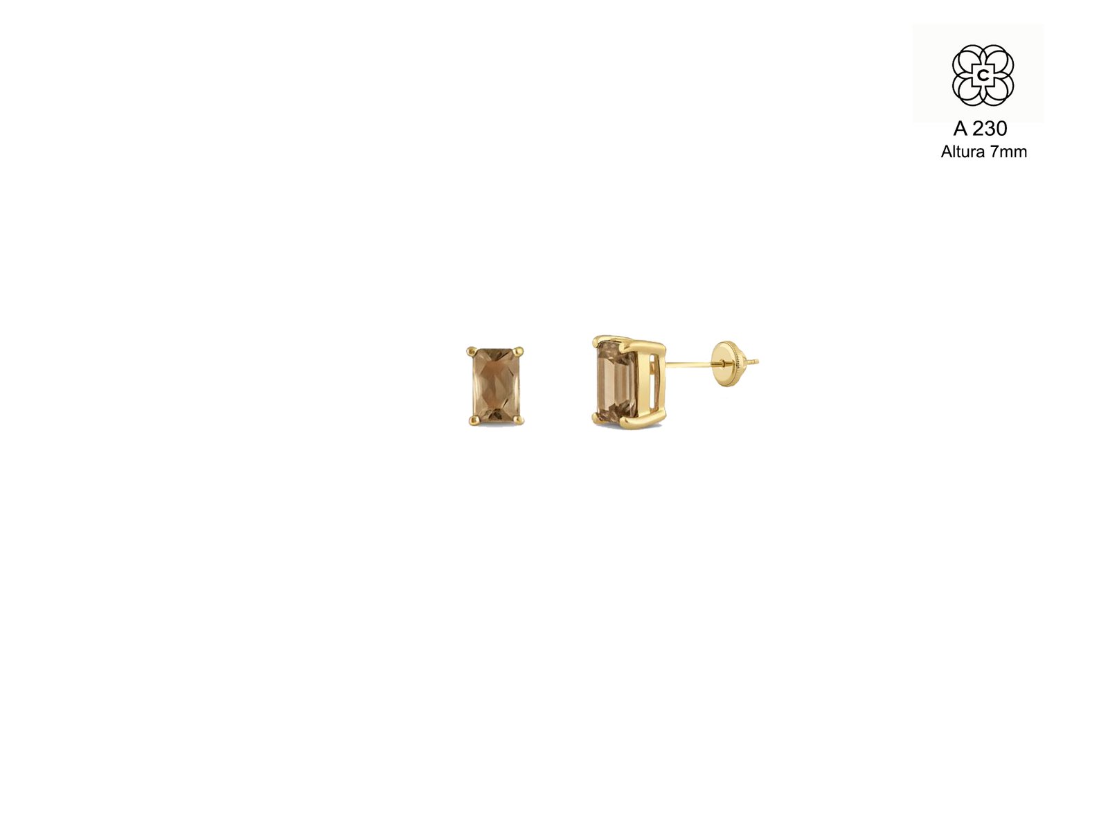 *Caravanas *Material: Oro 9K *Color del Metal: Amarillo *Piedra: Cuarzo ahumado