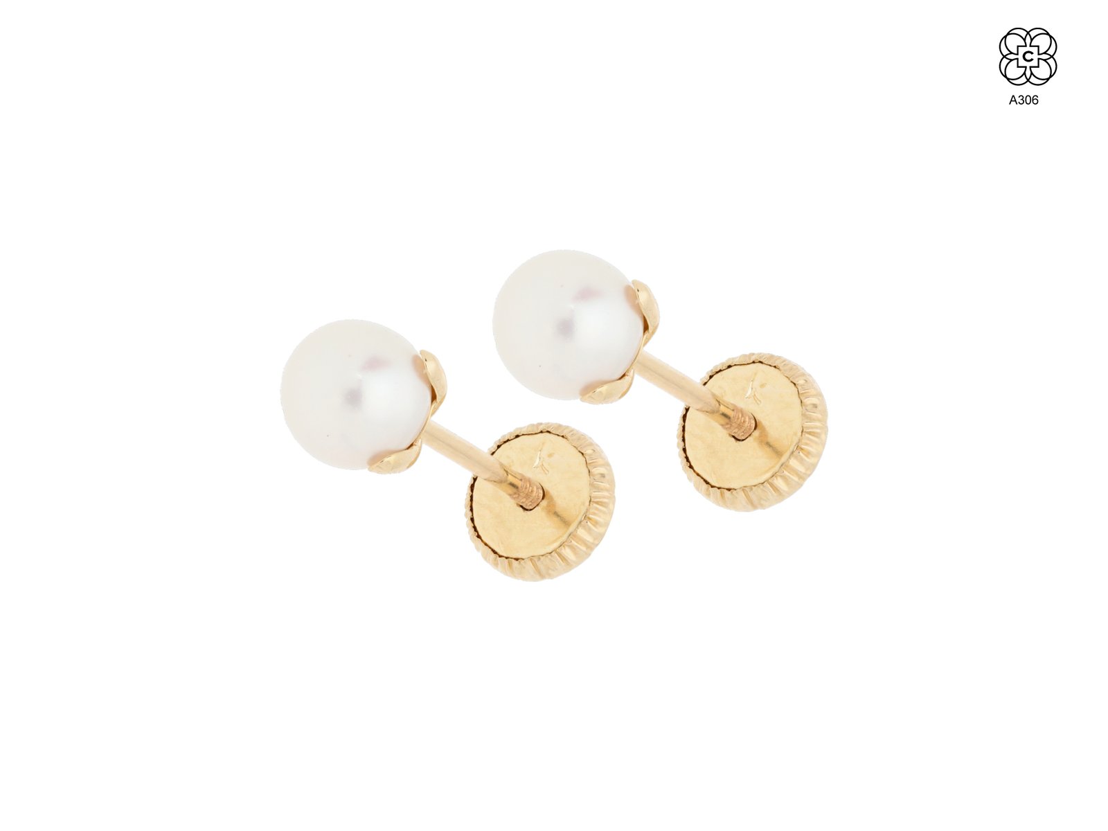 *Caravana *Material: Oro 9K *Color del Metal: Amarillo con Perla 5mm