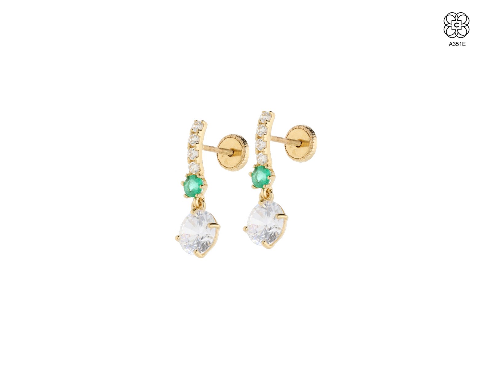 *Caravana *Material: Oro 9K *Color del Metal: Amarillo *Piedra: Circonita color verde esmeralda