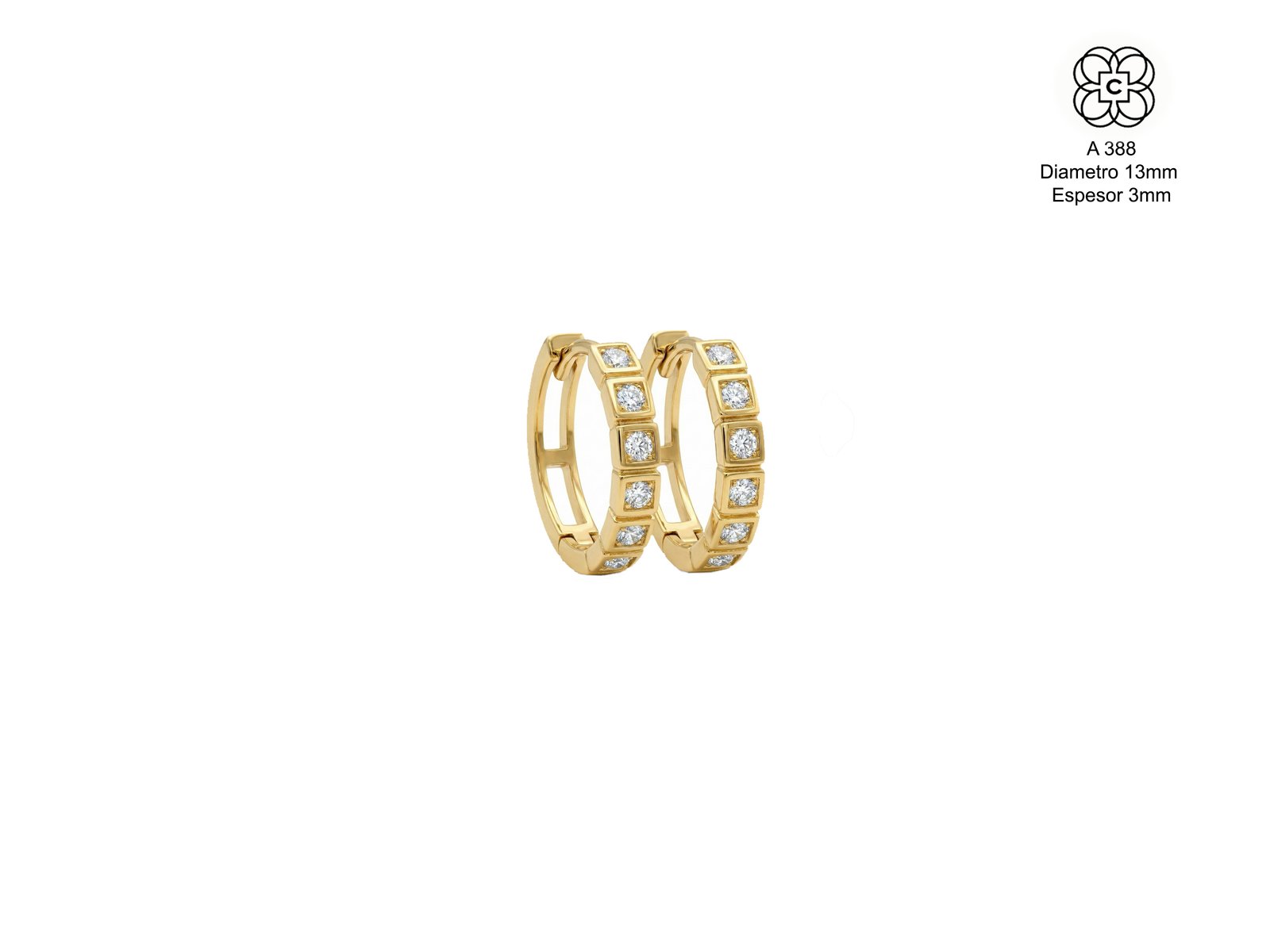 *Caravanas *Material: Oro 9K *Color del metal: Amarillo * Piedra: Circonita *Tamaño: 13 mm