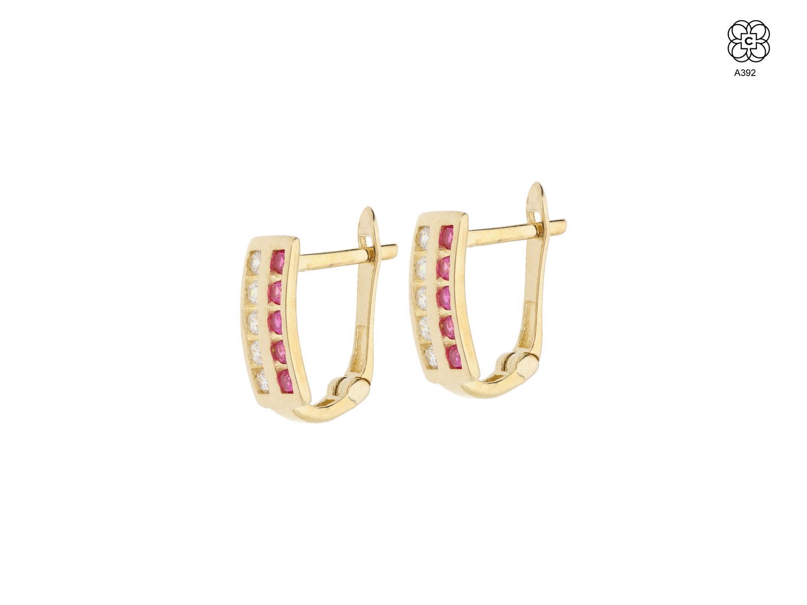 *Caravana *Material: Oro 9K *Color del Metal: Amarillo *Piedra: Circonita blanca y Rubí
