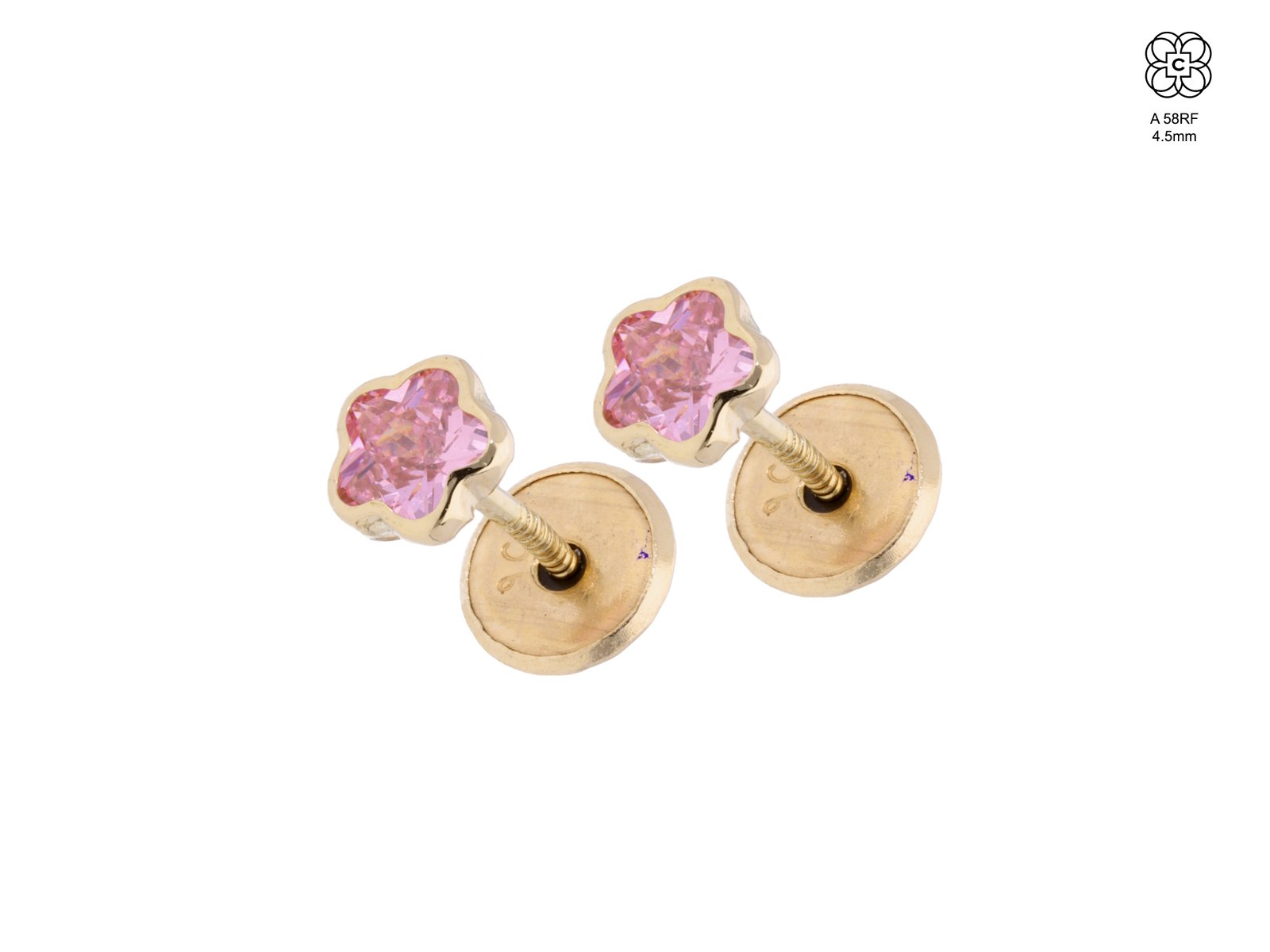 *Caravana *Material: Oro 9K *Color del Metal: Amarillo *Piedra: Circonia Rosa Francia *Tamaño: 4.5mm