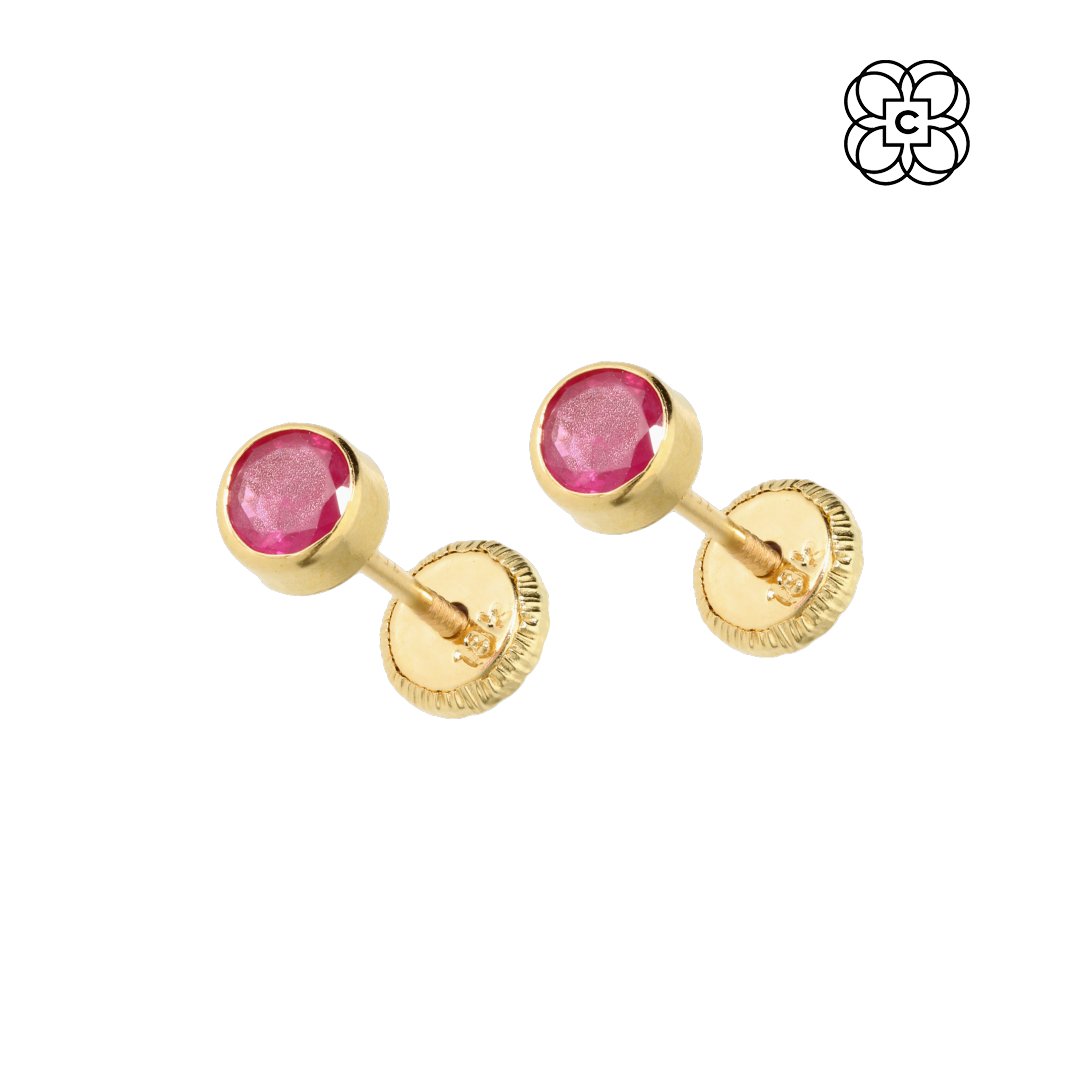 *Caravana *Material: Oro 18K *Color del Metal: Amarillo *Piedra: Rubí 4 mm