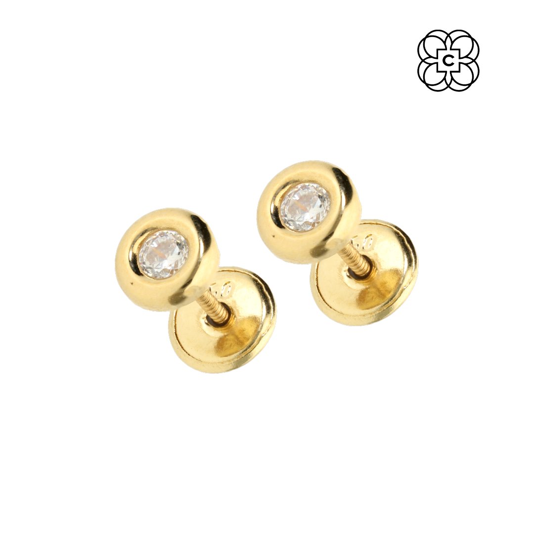 *Caravana *Material: Oro 18K *Color del Metal: Amarillo *Piedra: Circonita *Tamaño: 3 mm