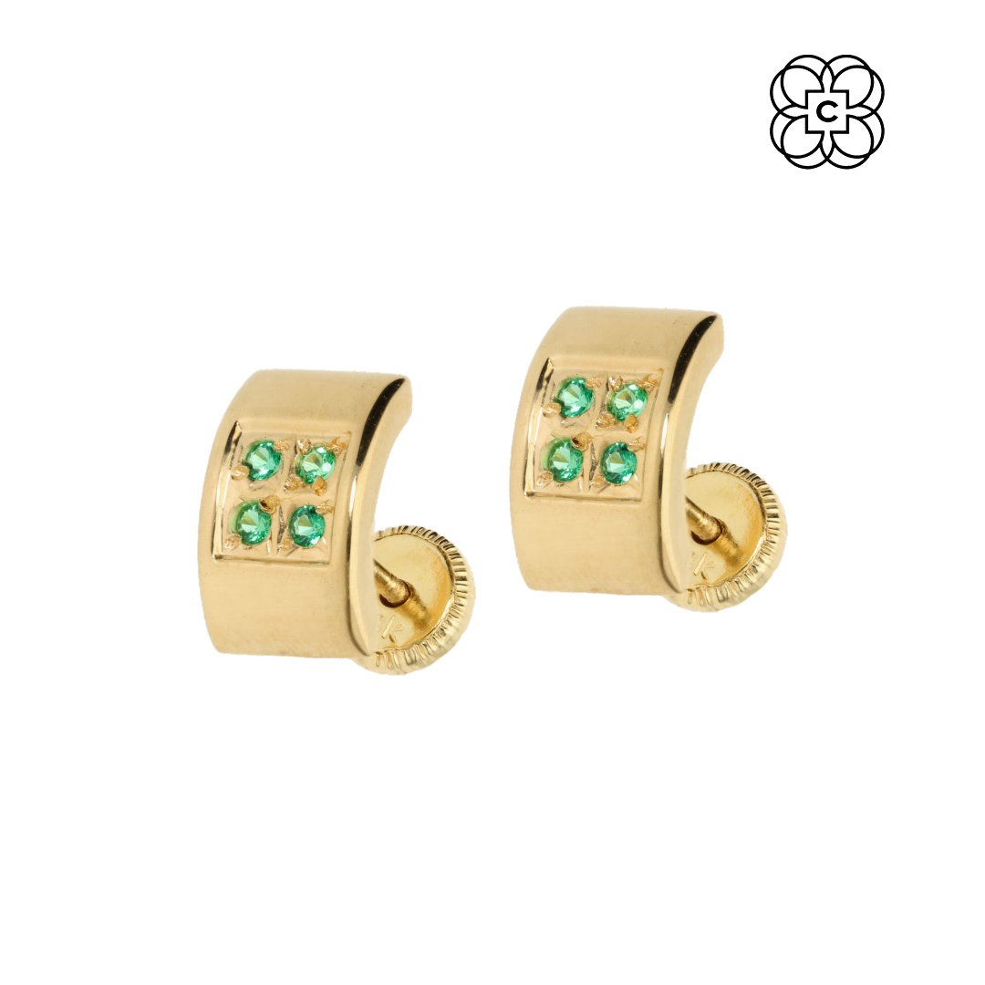 *Caravana *Material: Oro 18K *Color del Metal: Amarillo *Piedra: Circonita color Esmeralda