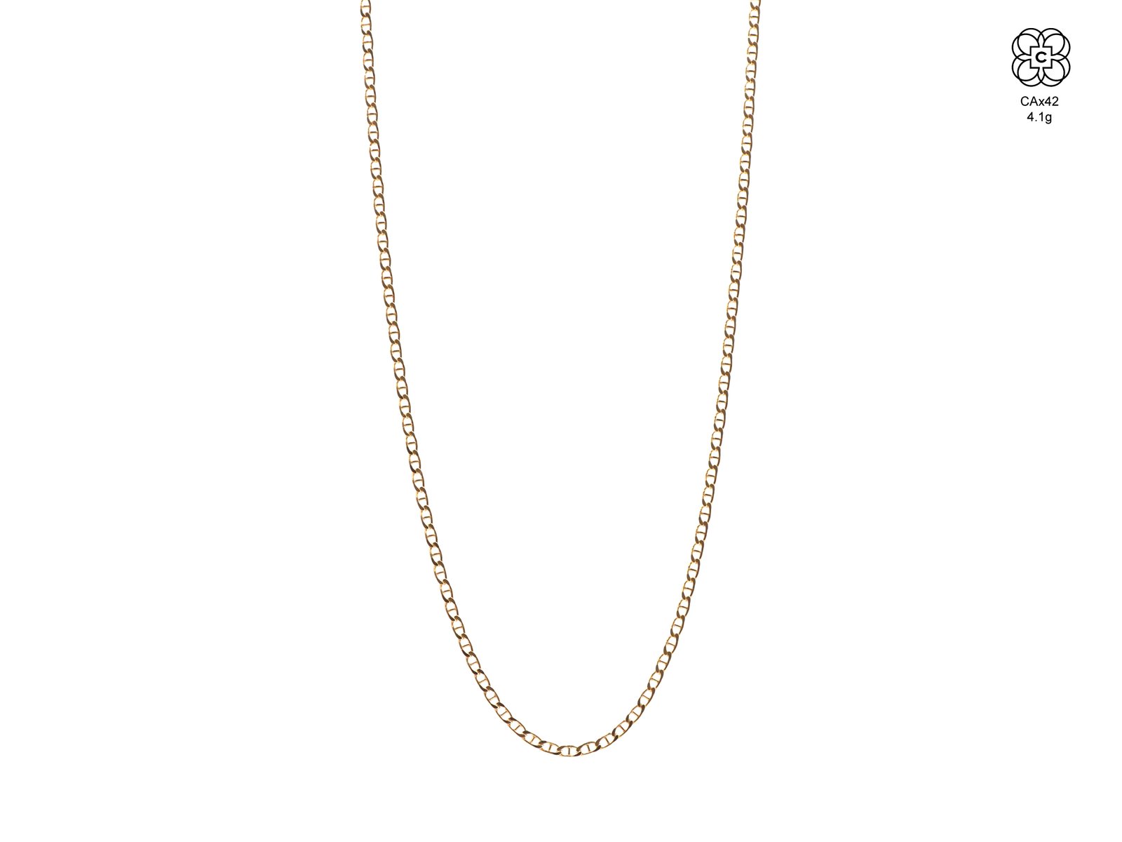 *Cadena *Material: Oro 8K *Color del Metal: Amarillo *Tamaño: 42 cm *Peso aprox.: 4.1 g
