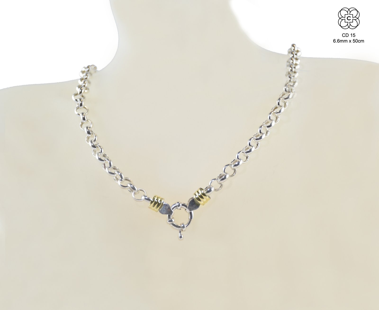 *Cadena *Material: Plata y Oro *Tamaño: Rolo Nº 1 cierre marinero; 50 cm