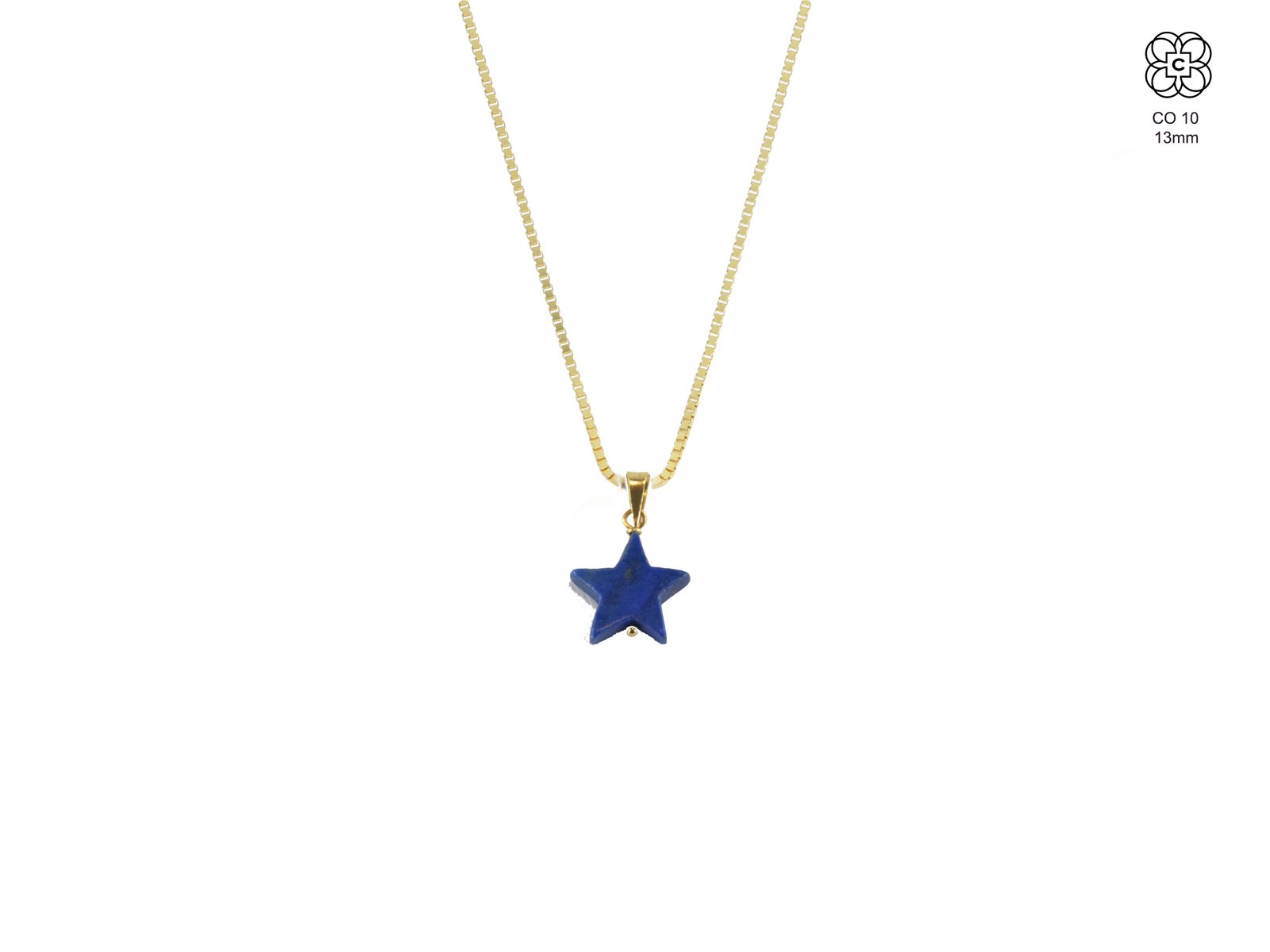 *Colgante *Material: Oro 18K *Color del Metal: Amarillo * Material estrella: Lapislázuli *Tamaño: sin enganche 13 mm