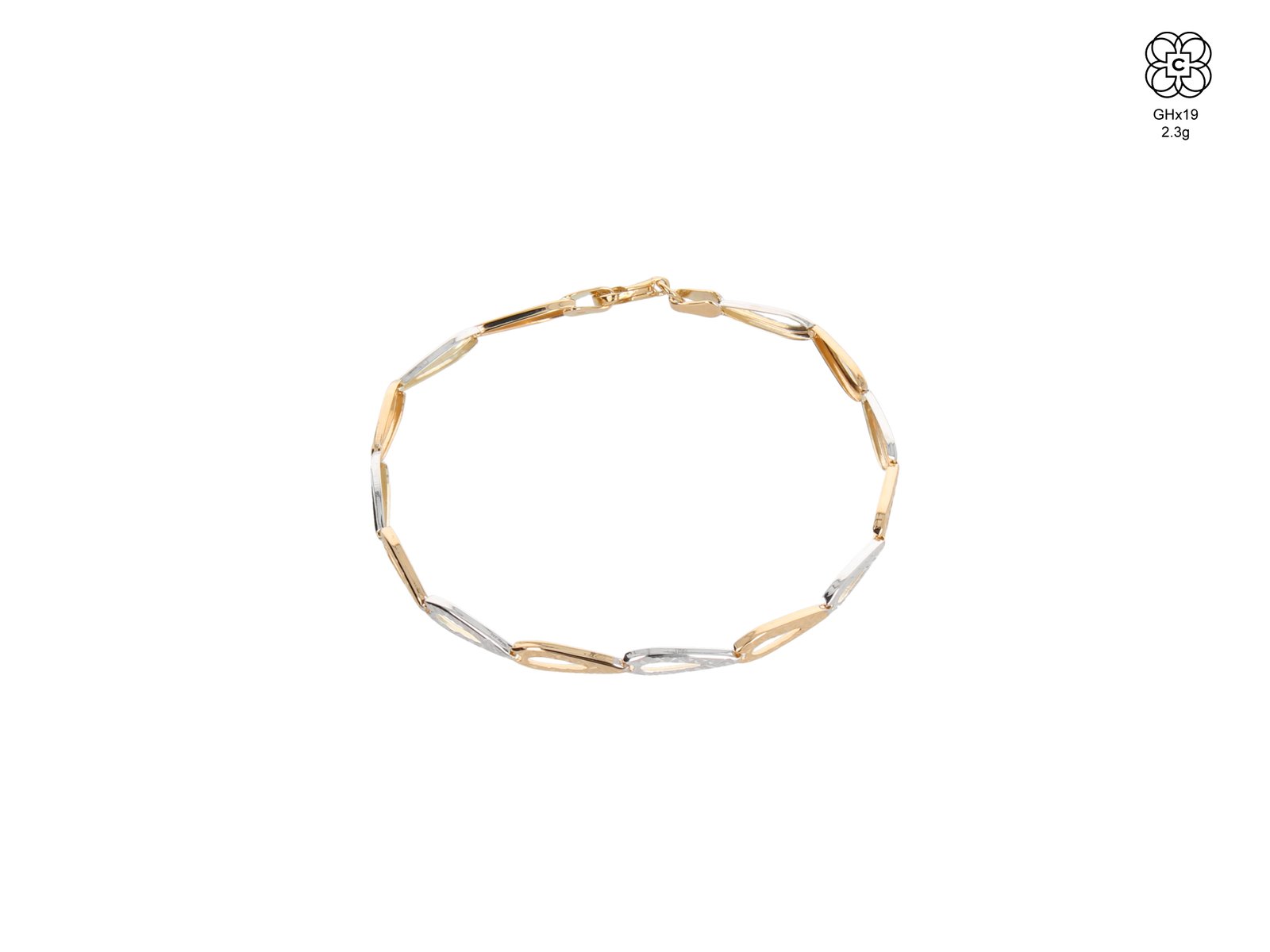 *Pulsera *Material: Oro 9K *Color del Metal: Bicolor *Tamaño: 19 cm *Peso aprox.: 2.3 g