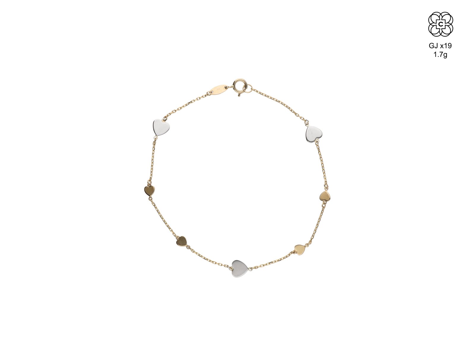 *Pulsera *Material: Oro 9K *Color del Metal: Bicolor *Tamaño: 19 cm *Peso aprox.: 1.7 g