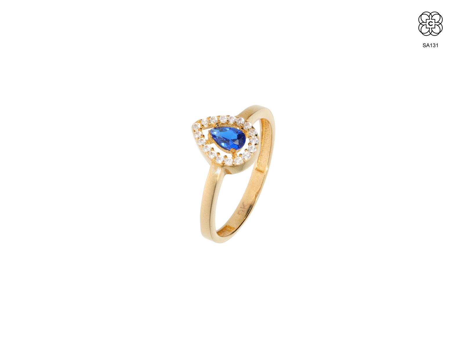 *Anillo *Material: Oro 9K *Color del Metal: Amarillo *Piedra: Circonita color Zafiro Azul