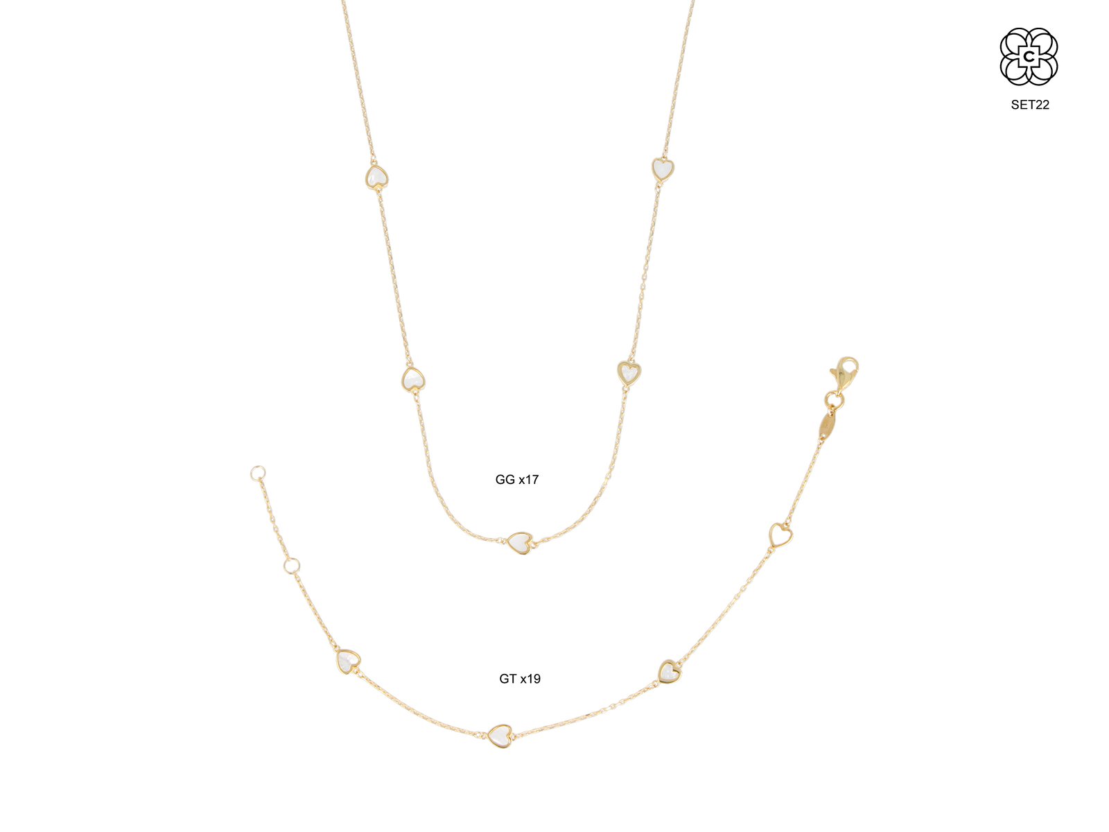 *Set *Material: Oro 9K *Color del Metal: Amarillo *Piedra: Nacar