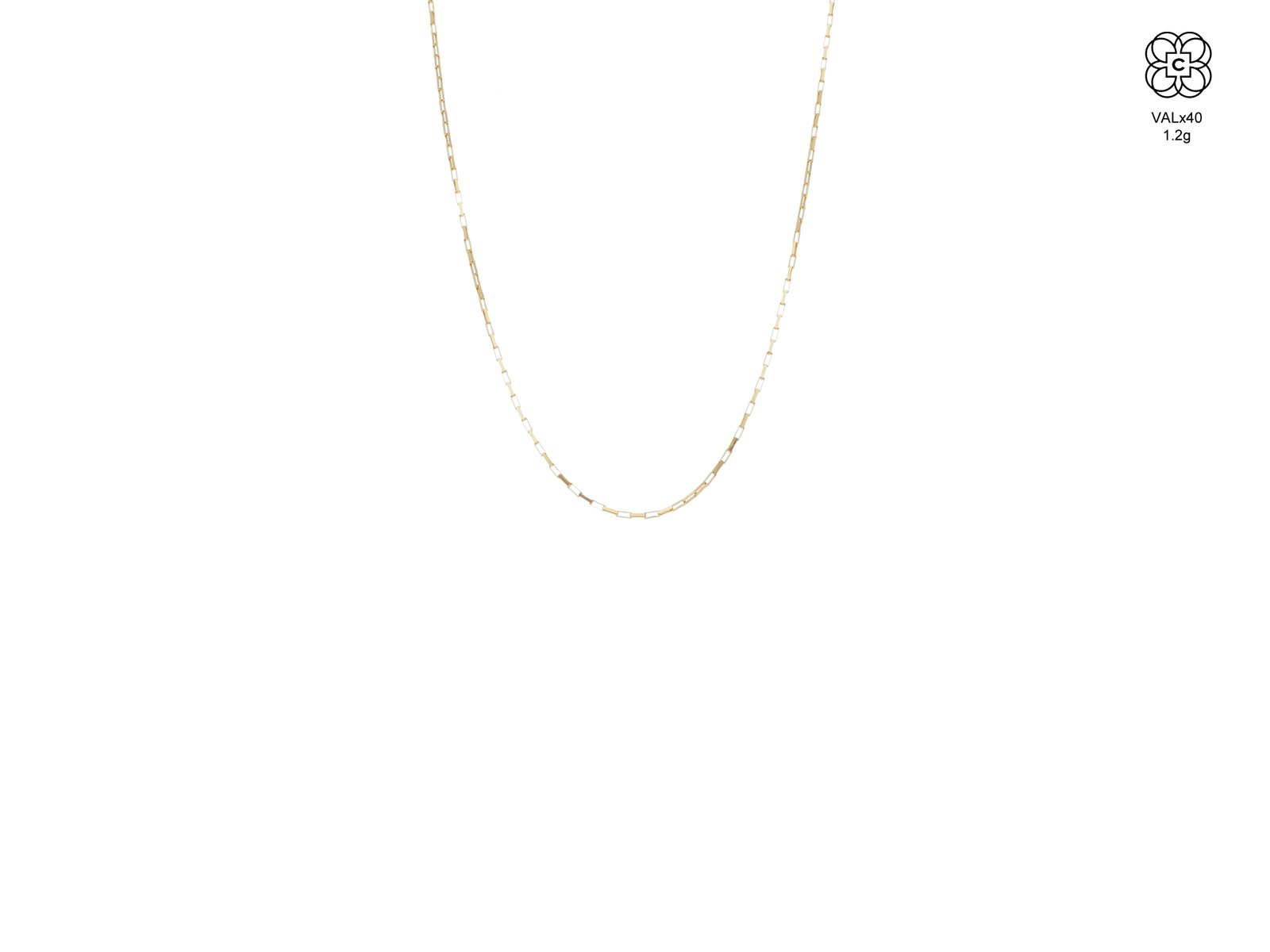 *Cadena *Material: Oro 18K *Color del Metal: Amarillo *Tamaño: 40 cm *Peso aprox.: 1.2 g